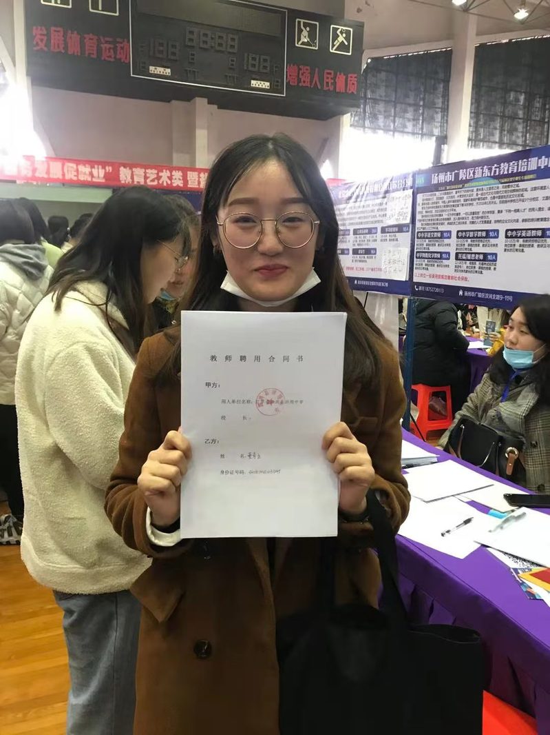 为办好本次招聘会,张桂华专门召开相关部门和二级学院领导协调会,对本次招聘会的各项安排提出具体指导意见,强调要认真落实好疫情防控的各项要求,确保招聘会安全、有序、有效。招生就业处经过广泛宣传、认真筹备、精心组织,通过网络及电话邀请等多种方式与用人单位进行广泛联络,层层筛选,保证了来校招聘单位的质量以及岗位需求与我校毕业生的匹配度,法政学院2021届毕业生万旭、倪仕彩、董奇玉等三名同学与四星级高中泗洪县洪翔高级中学现场签约。