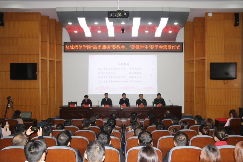 坐标网讯 11月27日下午,我校第二届“高尚师德”奖教金和“美德学生”奖学金颁奖仪式在厚德楼二楼西会议室隆重举行。校党委书记戴斌荣,党委常委、副校长毕凤珊,党办校办、人事处、财务处、学生处、发改办(校友办)等相关部门负责人,2020年新入职教师以及部分学生代表参加了颁奖仪式。江苏省教育基金会理事长步锦昆,苏州大学原校长钱培德,江苏省教育基金会秘书长魏巨龙等应邀出席。