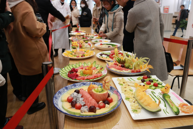 开幕式现场,组织“厉行勤俭节约,践行光盘行动”主题书画比赛和网络评选“我最喜爱的五大菜肴、点心和最喜爱的特色窗口”颁奖;校团委安排学生歌舞演出,活力助阵;幼儿园老师和孩子们倾情演绎欢快韵律操,博得现场阵阵掌声…
