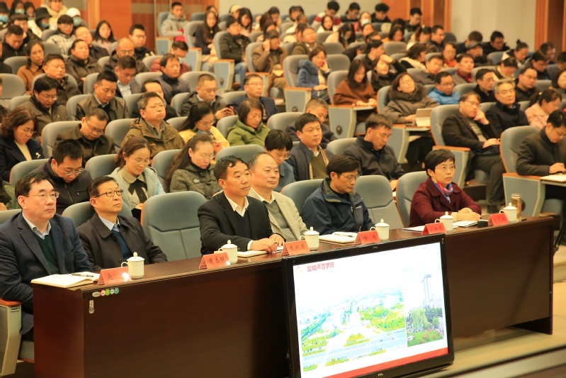 坐标网讯 12月3日下午,学习贯彻党的十九届五中全会精神省委宣讲团报告会在盐城师范学院图书馆学术报告厅举行。省委宣讲团成员、盐城市委常委、宣传部部长吴晓丹作宣讲报告。盐城师范学院在盐校领导、中层干部、党支部书记和党员师生代表300余人现场聆听报告。报告会由盐城师范学院党委书记戴斌荣主持。