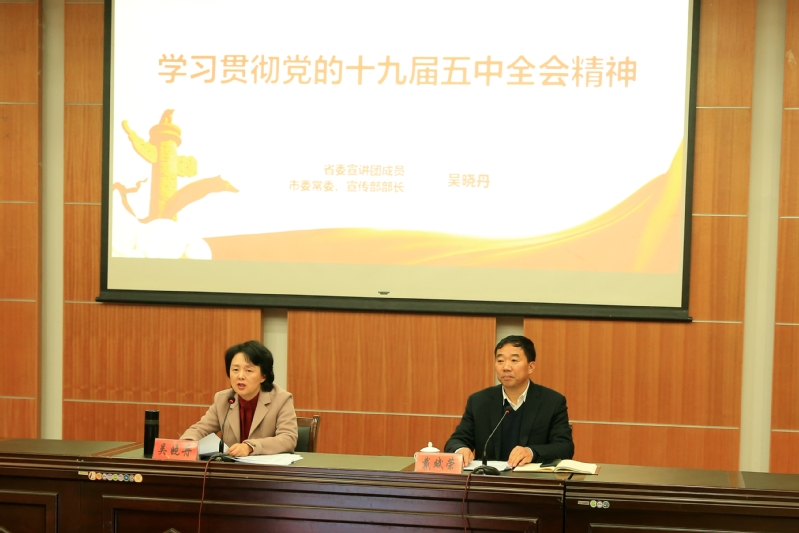 在报告会中,吴晓丹深刻阐明了党的十九届五中全会的重大意义,从新发展阶段、新发展理念、新发展格局三个“新”出发解析了党的十九届五中全会的精髓要义。她紧密结合实际,指出要毫不动摇坚持党的全面领导,切实做好思想政治工作,努力推进社会主义文化强国建设,从而为全面深入贯彻落实全会精神,为实现“十四五”规划和2035年远景目标作出积极贡献。