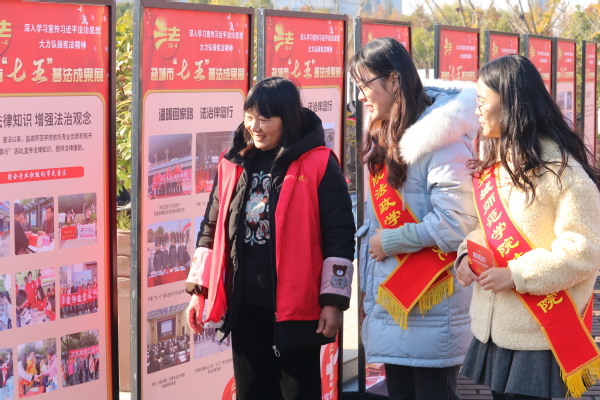 此次全国法治宣传活动主题为“深入学习宣传习近平法治思想,大力弘扬宪法精神”。活动期间,盐城市领导班子驻足我校法律援助咨询点,查看制作的宪法宣传资料,向我校志愿者了解宣传情况。领导对我校开展系列讲座推进“七五”普法工作所取得的成绩给予高度评价,还鼓励同学们不忘初心、扎实学识,积极参加法治宣传与实践活动。现场,普法志愿者还向市民们发放宪法宣传卡片,宣传宪法知识以及与工作生活密切相关的法律法规知识,专业老师提供现场法律咨询服务,为居民群众释法解惑,现场群众积极参与,气氛热烈。