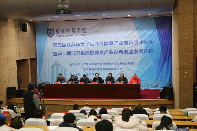大赛期间还举办了第二届江苏省高校体育创新创业发展论坛。史国生理事长,上海体育学院博士生导师、长江学者特聘教授周成林,南京紫金汇才科技有限公司董事长尚红宇,江苏省高新技术创业服务中心副主任章立,江苏敏驰体育科技有限公司董事长胡冠宇,盐城师范学院体育学院戴俊分别从中国高校体育大学生创新创业开展情况、新形势背景下我国运动健康产业创新的挑战、中国创新创业赛事情况、科技企业孵化及技术转让路径、新时期体育产业创新、体育类专业大学生创新创业现实困境与发展路径等方面作了专题报告和互动交流。