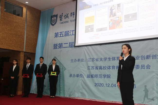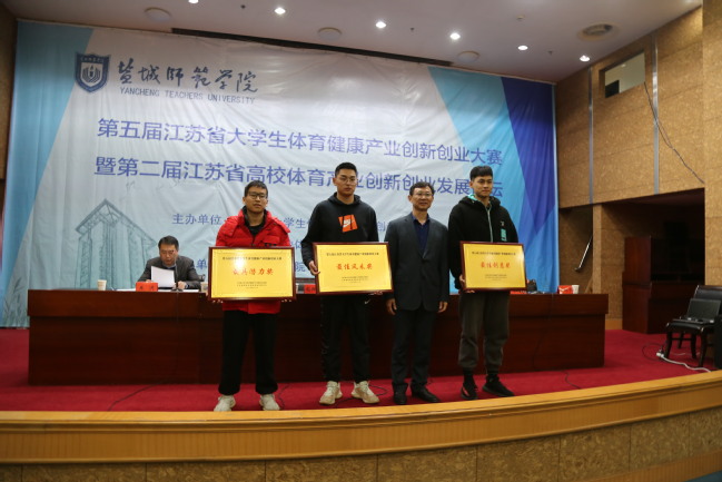 南京体育学院《非遗体育-智能石锁开发与推广》、盐城师范学院《民族体育风—智慧体育服务平台》斩获大赛特等奖;盐城师范学院《健康活力,三彩盐城—体育研学旅行》、中国矿业大学《向野而生—乡村振兴路上的实干跑者》、苏州大学《新型发令系统的设置与应用》等5个项目荣获一等奖;南京师范大学《领航体育,促进学生体质健康》、苏州科技大学《蚕宝儿童运动速干衣》等7个项目获比赛二等奖;南通大学《星球筑梦,足球强国》等9各项目获三等奖。比赛还设置了优秀奖、“最佳创意奖”、“最佳风采奖”、“最具潜力奖”、“最佳组织奖”。