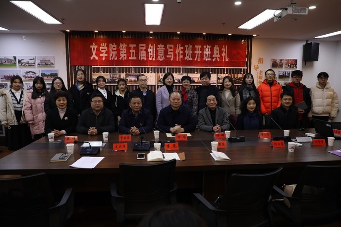 坐标网讯 12月13日下午,文学院召开第五届创意写作班开班典礼暨优秀学员表彰会。校党委副书记、校长方忠,盐城市剧作家协会主席、著名剧作家陈明,盐城市网络作家协会主席、《湖海》主编管国颂,盐城市文艺评论家协会主席、双语诗人陈义海,盐都区作家协会主席、儿童文学作家曹文芳,教务处处长岳峰,以及文学院全体领导班子成员出席会议,创意写作班第三届、第四届学员作为观礼嘉宾与第五届创意写作班全体师生参加了会议。