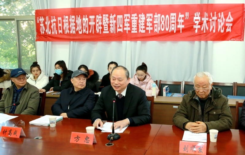 我校党委副书记、校长、新四军研究院院长方忠教授出席研讨会并致辞,对我校长期以来重视新四军研究,坚持以“铁军精神”指导办学所取得的显著成绩向代表们进行了介绍。盐城市政协原主席、盐城市新四军研究会原会长计高成,中国新四军研究会《铁军》杂志副主编刘顺发先生分别致辞。