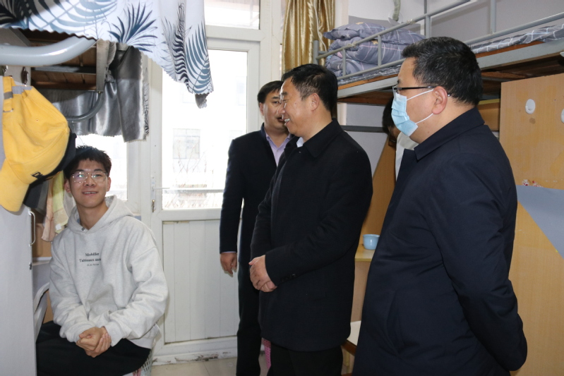 3月1日,2021年春学期开学第一天,校领导戴斌荣、方忠、崔刚等在党办校办、教务处、评估处、后勤保障集团等负责人的陪同下,走进学生宿舍、二级学院,深入“云课堂”,检查指导开学工作。