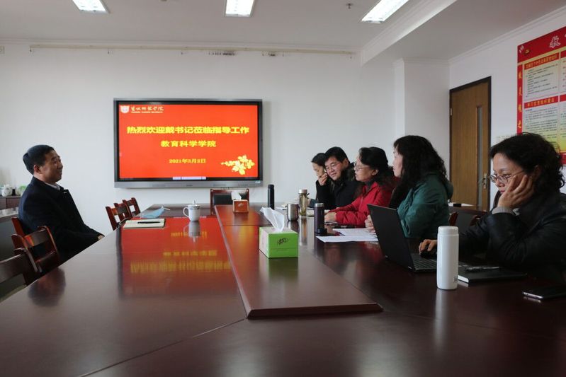 3月2日下午3:30,校党委书记戴斌荣到教科院开展实地调研,了解学生报到返校情况,并就教科院2021年教科院发展方向及未来五年发展目标与教科院领导班子成员深入座谈,还对具体工作进行了指导。