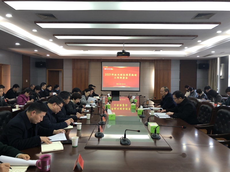 坐标网讯 3月4日上午,我校在厚德楼一楼西会议室召开2021年校内财务预算编制部署会议,会议由方忠校长主持,各二级学院、部门主要负责人出席会议。