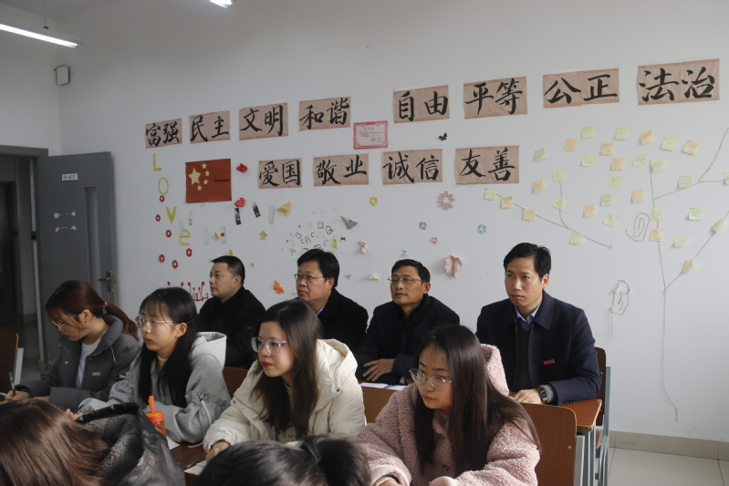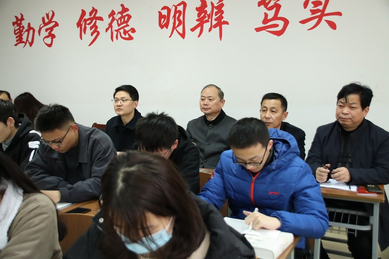 党委书记戴斌荣听取了马克思主义学院邢晓艳老师的《中国近代史纲要》,党委副书记、校长方忠听取了文学院段梦云老师的《中国文化概论》,党委副书记、纪委书记、省派驻监察专员刘必清听取了商学院黄庆庆老师的《商业银行业务与经营》,党委副书记于建江听取了湿地学院陈露露老师的《生物化学》,党委常委、副校长崔刚听取了马克思主义学院辛盼盼老师的《毛泽东思想和中国特色社会主义理论体系概论》,党委常委、副校长庞波听取了体育学院陈同童老师的《运动训练学》,党委常委、副校长张桂华听取了法政学院刘张华老师的《法律逻辑》,党委常委、副校长汤克明听取了信息工程学院唐仕喜老师的《项目管理与案例分析》,党委常委、副校长毕凤珊听取了外国语学院陈振媛老师的《国际商务谈判》。