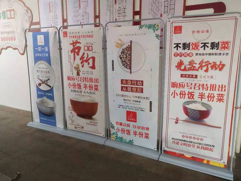 后勤基建处、后勤保障集团在食堂入口处的醒目位置,张贴倡议书、宣传海报和标语,倡导就餐师生“文明用餐、节约粮食”,大力营造营造浪费可耻、节约为荣的校园文化氛围。教工餐厅优化供餐模式,根据教职工需求每周定制菜谱,提供小份餐食,米饭、例汤实行半自助模式;学生食堂在保证菜品品种数量的同时,积极推行“半份菜”、“小份菜”销售,价格随之减半,同学们还可以按个人需求灵活增减分量。根据以往餐厨垃圾推测学生饭量,食堂将馒头、花卷的分量减少,改为约150克一个,尽量节约食材资源,降低学生消费支出,培养学生节约意识,有效解决食品浪费问题。