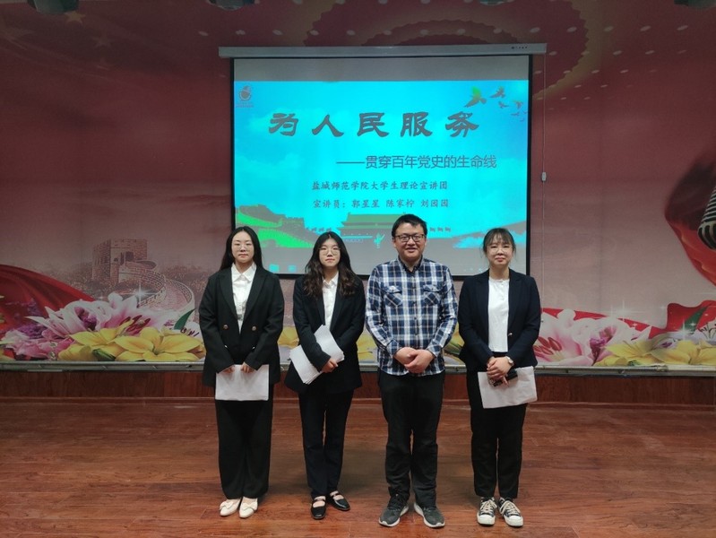4月19日下午,盐城师范学院第24批赴疆实习支教团的大学生陈家柠、郭星星、刘园园为新疆维吾尔自治区哈密市第十一中学七年级300多名师生作了题为“为人民服务——贯穿百年党史的生命线”党史学习教育专题宣讲。
