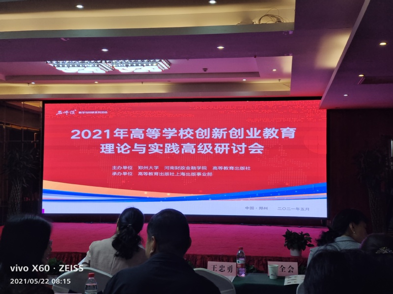 5月21-23日,由高等教育出版社、郑州大学和河南财政金融学院主办、高等教育出版社上海出版事业部承办的“2021年高等学校创新创业教育理论与实践高级研讨会”在河南郑州召开。来自全国近百所高校的200多名专家学者参加了会议。高等教育出版社上海出版事业部主任孔全会、河南省教育厅高等教育处副处长张小茜出席大会并致词。我校党委书记戴斌荣应邀出席大会并作主旨报告。