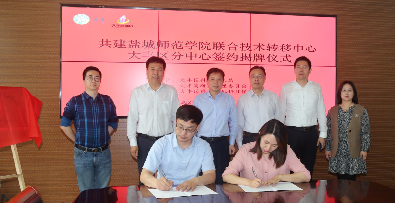 双方签署共建盐城师范学院联合技术转移中心大丰区分中心协议并揭牌。