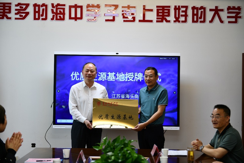 5月26日上午,我校与江苏省海头高级中学共建“优质生源基地”签约及授牌仪式在海头中学举行。我校党委副书记、校长方忠向江苏省海头高级中学党委书记、校长刘兴法授牌。赣榆区教育工委委员杨定法主持仪式。