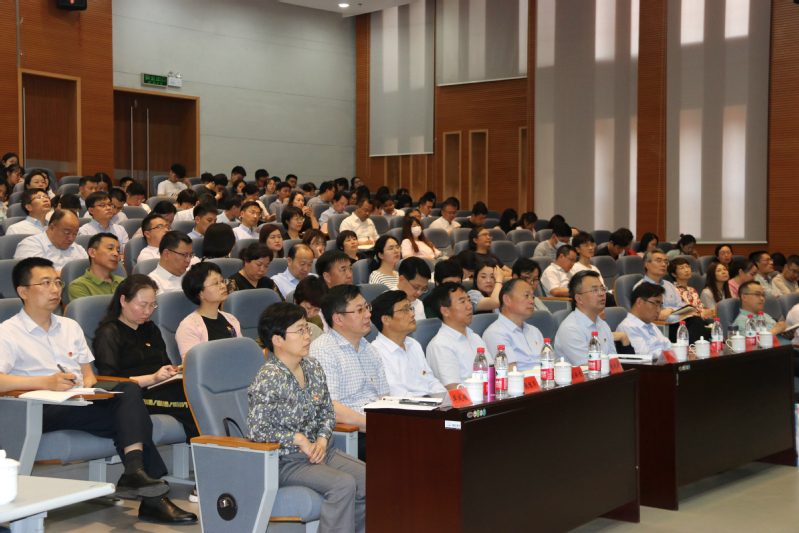 全体在盐校领导,校党史学习教育领导小组及办公室成员,中层干部,思想政治理论课教师,以及师生党员代表现场聆听报告。