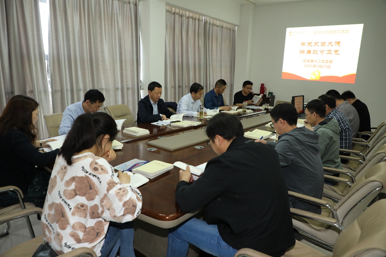 27日,机关第十二党支部开展党史学习教育,重点专题学习中国改革开放新时期历史党的奋斗史,王振华传达《关于开展“510”警示教育系列活动的通知》,支委领学《习近平论中国共产党历史》《中国共产党简史》等。