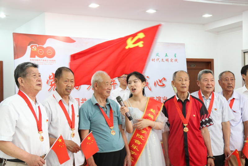 正值中国共产党百年华诞,7月1日下午,盐城师范学院音乐学院文化艺术服务团走进五星街道印汽社区,和“在党50年”老党员们一起,为党的百年华诞举办了一场别开生面的“音乐生日会”。