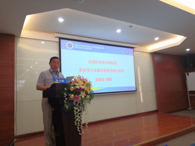 我校原校长、全国应用型本科院校英语类专业教学联盟理事长薛家宝发表致辞,他指出本次论坛将围绕应用型本科院校英语专业的人才培养模式,一流专业建设与一流课程建设,课程资源的开发与实践教学的构建等问题进行深入探讨,希望各位专家充分发表意见,各位老师进行广泛、深入的交流,共同谱写新时代应用型本科院校英语类专业教学改革新篇章。王文斌等六位主旨报告专家深刻剖析了英语类专业教学现状和发展趋势,着眼专业建设、课程建设、资源建设,推动教学改革,为新时代应用型本科院校英语类专业改革与发展指明了新方向、开拓了新思路、提供了新方法。在教学展示环节,我校周亮亮老师介绍了综合英语课程的教学理念、教学模式和教学特色,并与与会专家和教师交流重点教学问题,巩固教学成果,交流有益教学经验。