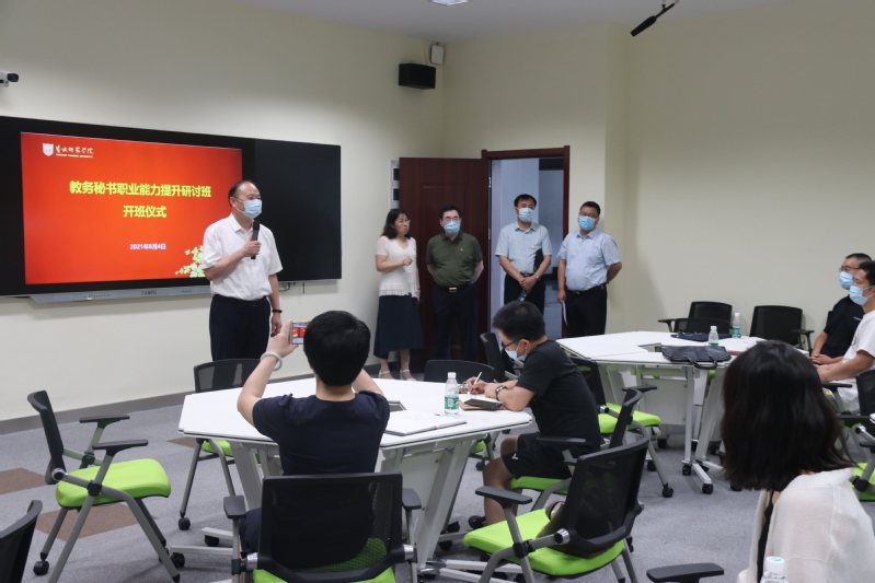 方忠、庞波还来到正在举办的学校教务秘书职业能力提升研讨班上。方忠指出,教务秘书发挥着教师和学生之间的桥梁纽带作用,责任重大,希望广大教务秘书通过培训研讨不断提高自身业务水平,深入思考,认真分析,走专业化发展之路。