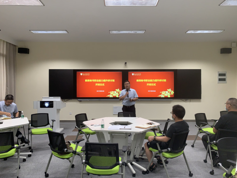 8月4日上午,我校在新长校区未来教室举行教务秘书能力提升研讨班,党委副书记、校长方忠,各二级学院教研办主任、教务秘书以及教务处全体工作人员出席研讨班。研讨班开班仪式由教务处处长岳峰主持。