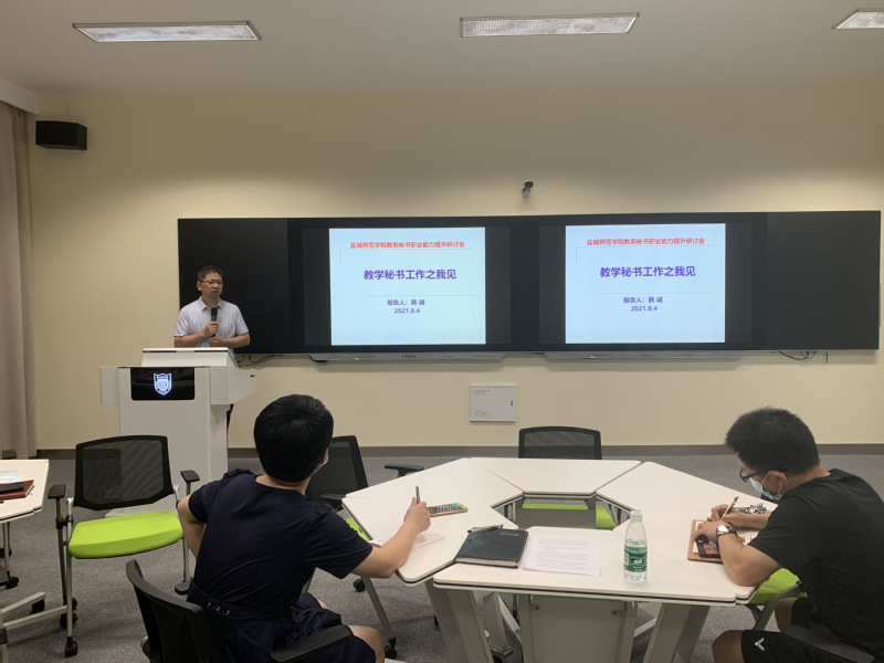 此次研讨班历时一天半,教务处副处长郭晓俐为教务秘书进行师德师风专题教育。教务处相关科室分别就教学运行、考务管理、学籍管理、考试工作、人才培养方案修订、大学生创新创业项目申报、省师范生信息库填报和普通话考试等工作进行了详细说明,对日常教学管理的流程及注意事项进行了梳理,尤其是在实际操作过程中容易出现的具体问题,结合实际案例进行了认真、细致讲解。法政学院贾美艳作为教务秘书代表分享了工作经验及心得体会。