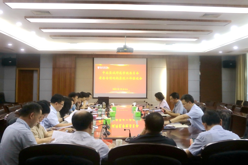 10月6日上午,学校在新长校区厚德楼一楼西会议室召开党委落实省委专项巡视整改工作推进会。党委书记戴斌荣出席会议并讲话,党委副书记于建江主持会议,党委常委、纪委书记、省监委派驻监察专员韩雅丽,意识形态、选人用人、党委巡察等三个专项巡视整改工作牵头单位负责同志出席会议。