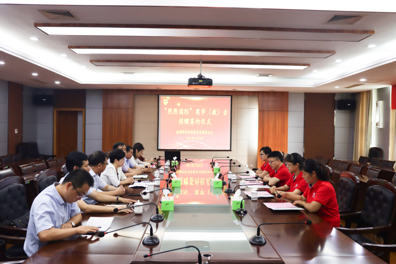 10月8日下午,江苏熙熙国际控股集团有限公司—盐城师范学院“熙熙国际”奖学(教)金捐赠签约仪式在新长校区厚德楼一楼西会议室举行。江苏熙熙国际控股集团董事长梁中宝,副董事长、副总经理顾洪美,副总经理陈爱霞、马风云,校党委常委、副校长毕凤珊,党办校办、财务处、发改办、校友办、基金会、商学院等部门相关负责人出席仪式。仪式由发改办主任、高教所所长黄新如主持。