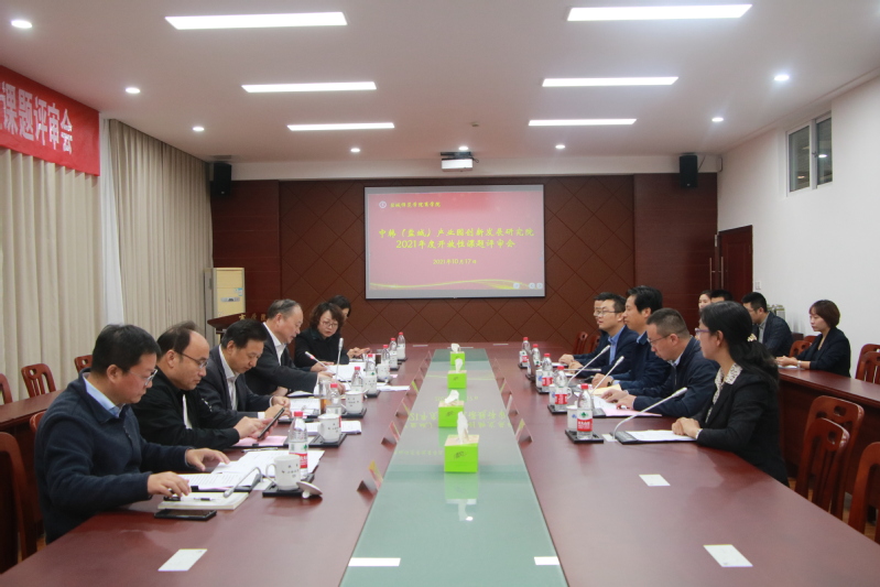商学院党委副书记、院长殷凤春向各位莅临专家汇报了商学院、研究院高质量发展情况和2021年度研究院开放性课题申报情况。方忠等领导对商学院和中韩(盐城)产业园创新发展研究院取得的成绩给予了高度肯定。