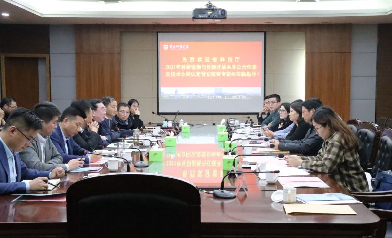 10月27日下午,省科技资源统筹服务中心副主任孙兴莲带领专家组一行来我校就2021年学校大型仪器设备开放共享公示信息及技术合同认定登记工作进行了现场核查。校党委常委、副校长庞波及国有资产与实验室管理处、联合技术转移中心、教务处、科技与产业处、人事处、财务处、化学与环境工程学院等单位负责人参加了会议。