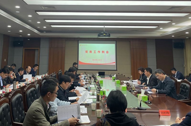 11月4日下午,党委书记戴斌荣在厚德楼一楼西会议室主持召开11月份党务工作例会,并就当前疫情防控、巡视整改、意识形态和党建考核等工作提出要求。党委副书记于建江,党委常委、纪委书记、省监委派驻监察专员韩雅丽出席会议。