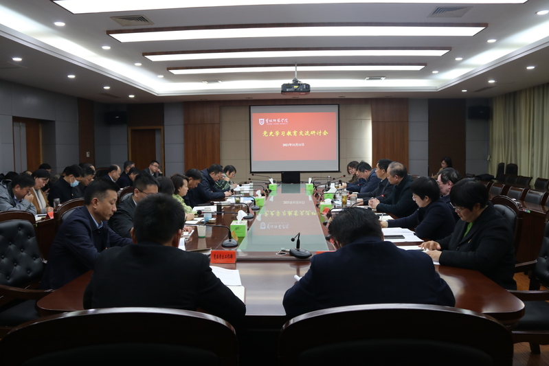 11月11日下午,我校召开党史学习教育交流研讨会,进一步深化对习近平总书记“七一”重要讲话精神、党的百年奋斗史、对马克思主义中国化成果特别是习近平新时代中国特色社会主义思想的领会与把握,确保高标准高质量开展党史学习教育。会议由校党委书记戴斌荣主持。