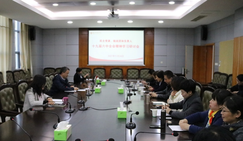 11月24日下午,在学校厚德楼一楼东会议室召开了校民主党派、统战团体班子成员党的十九届六中全会精神学习研讨会,校党委副书记于建江,校民主党派、统战团体等统战成员代表13人参加研讨会,会议由校统战部常务副部长孙春梅主持。