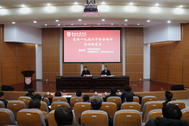 根据市委统一安排,12月14日下午,盐城市委宣讲团成员、市委副秘书长、市委研究室主任潘迎华来我校宣讲党的十九届六中全会精神。全体在盐校领导、党支部书记以及师生代表参加会议。学校党委副书记于建江主持宣讲会并讲话。