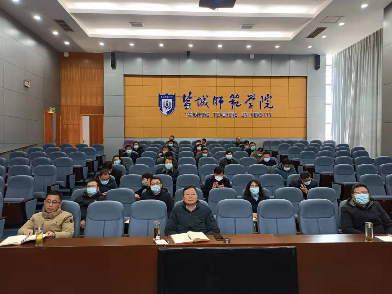各二级学院教学院长以及教务处、评估处全体人员在主会场参会,各二级学院组织教师代表同步收看。