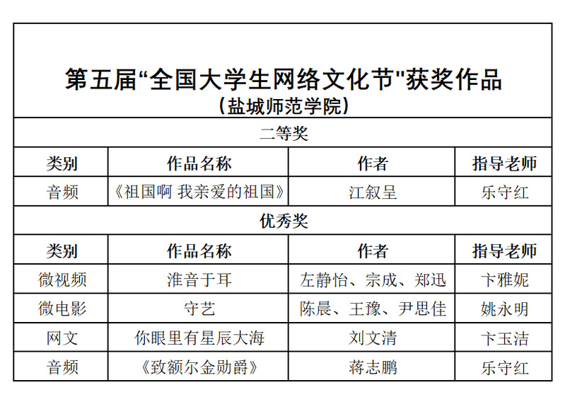 其中,我校师生在“全国大学生网络文化节”中获得5个奖项,现将详细名单公布如下: