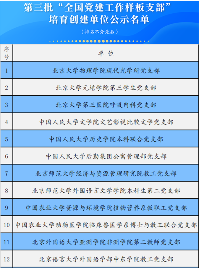 近日,教育部思政司公布了第三批新时代高校党建示范创建和质量创优工作结果,共遴选产生11所全国党建工作示范高校、100个全国党建工作标杆院系和1000个全国党建工作样板支部培育创建单位。我校离退休教职工第七党支部、教育科学学院教工第三党支部双双入选“全国党建工作样板支部”培育创建单位。这是我校继法政学院教师第一党支部获评第二批“全国党建工作样板支部”后,再次有2个基层党组织成功入选全国高校党建“双创”计划,实现了我校基层党建工作的又一突破。