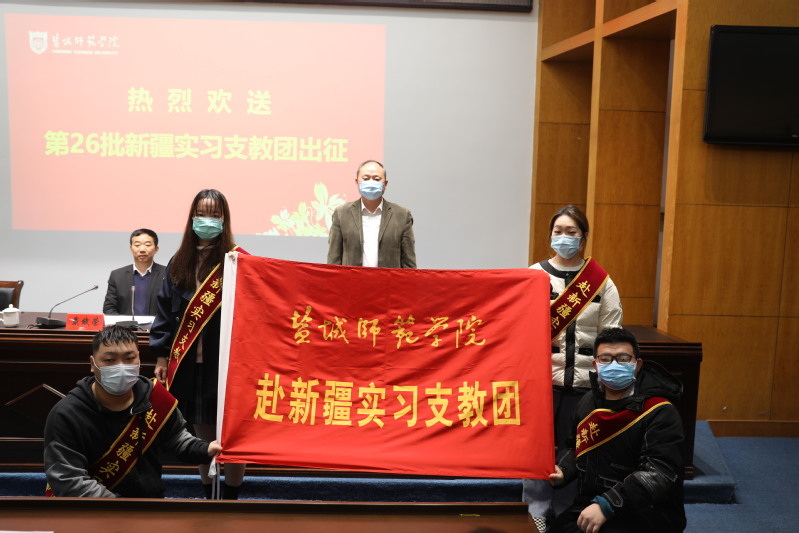 据悉,我校已派出25批、共计1426名同学和45名老师奔赴新疆开展实习支教活动。教育部工作简报先后4次推介我校新疆实习支教工作,《光明日报》《新华日报》等多家媒体持续关注我校新疆实习支教工作。本次第26批赴新疆实习支教团由美术与设计学院葛永锋老师、外国语学院焦春艳老师和来自文学院、马克思主义学院、历史与公共管理学院、外国语学院、音乐学院、美术与设计学院、教育科学学院、数学与统计学院、物理与电子工程学院、化学与环境工程学院等十个学院的50名同学组成,他们将赴新疆伊犁州、哈密市的中小学、幼儿园开展为期一学期的实习支教工作。