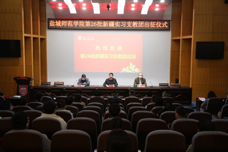 3月13日下午,我校在新长校区举行第26批赴新疆实习支教团出征仪式。学校党委书记戴斌荣出席会议并讲话,党委副书记、校长方忠为第26批赴新疆实习支教团授团旗。党委常委、副校长崔刚主持出征仪式。