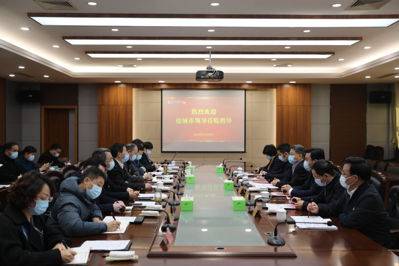 3月23日下午,盐城市委副书记、市长周斌一行莅临我校检查指导工作。盐城市副市长王连春,市政府秘书长刘光球、办公室副主任徐翔,市卫生健康委员会主任崔国静,市教育局局长戴红光陪同检查。学校党委书记戴斌荣,党委副书记、校长方忠分别汇报相关工作情况。全体校领导参加汇报会。