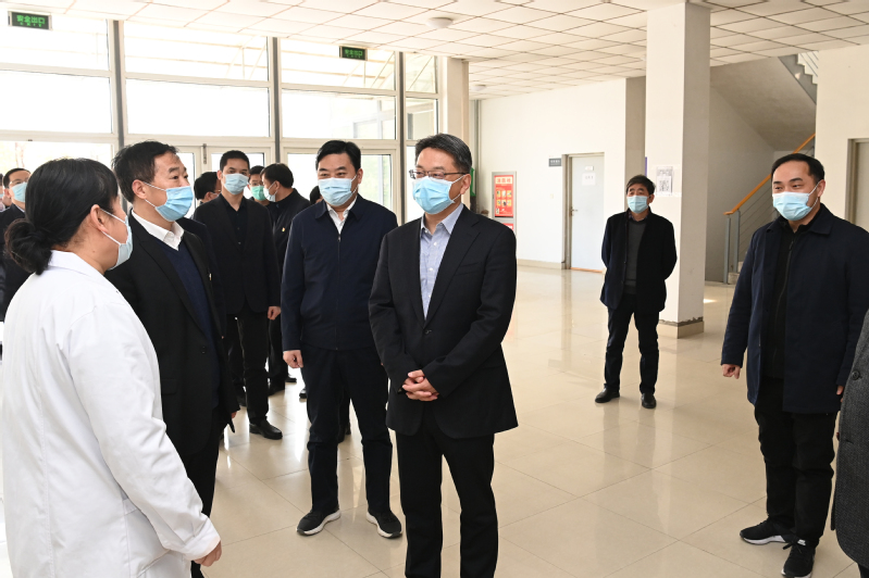 在校期间,周斌一行重点对我校线上教学、核酸检测、防疫物资储备、餐厅环境等进行实地检查。