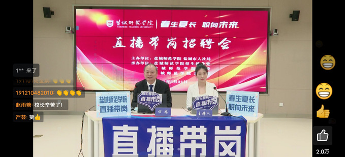 盐城市人社局、亭湖人才中心、盐都人才中心等单位以及各二级学院领导老师参加本次直播带岗活动。