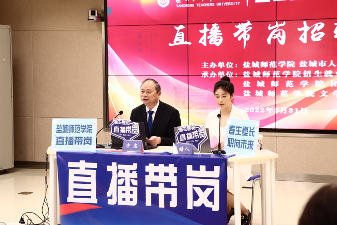 为贯彻落实党中央、国务院和省委、省政府稳就业保就业的决策部署,深化“两在两同促就业”行动,加强毕业生就业指导服务,促进2022届毕业生更加充分更高质量就业,3月31日,“春生夏长,职向未来” 2022届毕业生就业促进季直播带岗招聘活动在新长校区综合教学楼105未来教室举行。学校党委副书记、校长方忠,党委常委、副校长张桂华,市人力资源和社会保障局党委委员、副书记、省苏北农村人才市场管理委员会办公室主任郑英舜等领导嘉宾线上线下共同参加本次活动。