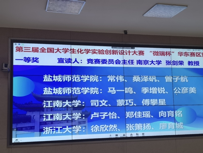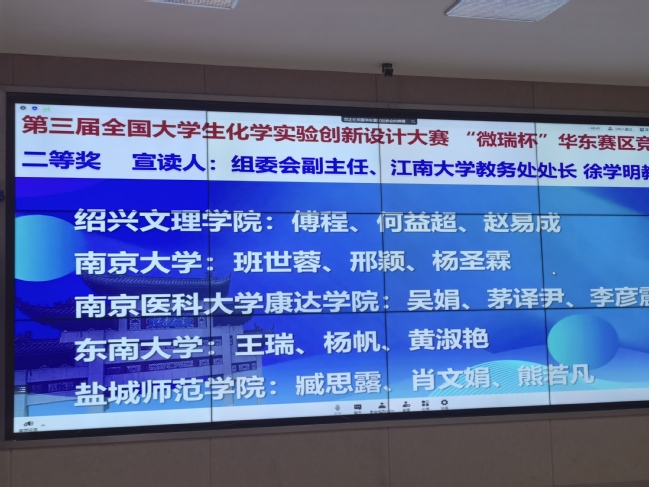 7月10日,由中国化学会和教育部高等学校国家级实验教学示范中心联席会主办的第三届“微瑞杯”全国大学生化学实验创新设计竞赛华东区赛在江南大学落下帷幕。经过激烈的角逐,由我校化学与环境工程学院推荐参赛的三支队伍全部获奖,其中一等奖2项,二等奖1项,取得历史最好成绩。