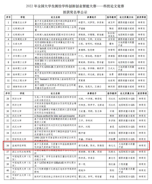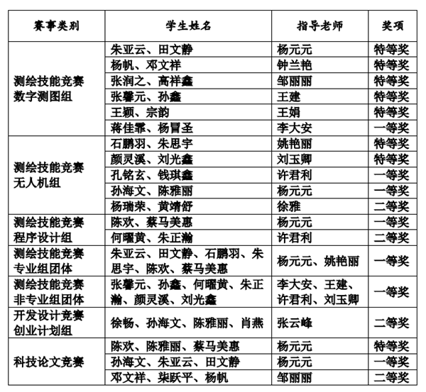 近日,2022年全国大学生测绘学科创新创业智能大赛公布获奖名单,我校城市与规划学院学生在测绘技能竞赛(数字测图组、无人机组、程序设计组)、开发设计竞赛(创业计划组)和科技论文竞赛三大赛道中均斩获佳绩,获特等奖8项,一等奖7项,二等奖4项,29名参赛同学全部获奖,获奖率100%。