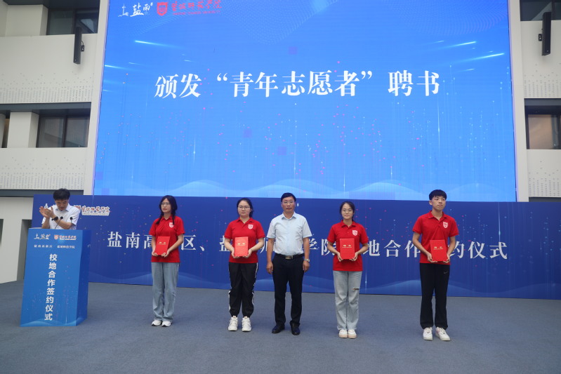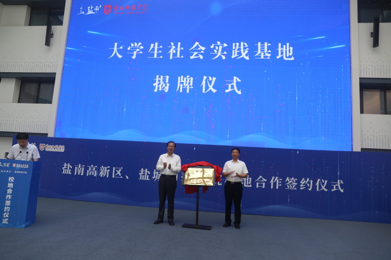 活动现场,戴斌荣与高尚德共同为“盐城师范学院大学生社会实践基地”揭牌;我校文学院与盐南高新区共同签署《共建社会实践基地协议书》《共建青年志愿服务基地协议书》;盐南高新区为大学生志愿者代表颁发街道社区挂职实践锻炼聘书。文学院林雨菡作为大学生志愿者代表发言。