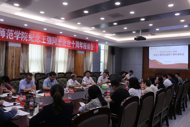 座谈会上,戴斌荣深情回忆与王强老师生前工作中交往的点点滴滴。他指出,要深入学习宣传王强先进事迹,准确把握王强先进事迹的精神内涵,他有坚定的理想信念、严谨的治学素养、崇高的人格魅力,他是马克思主义忠诚传播者、执着求索者、坚定践行者;要深入学习宣传王强先进事迹,将其贯彻到学校的各项工作中,尤其是在学校第四次党代会即将召开之际,努力做好学校今后五年规划的顶层设计,加速推进学校事业高质量发展,为建设特色鲜明的高水平师范大学不懈努力。
