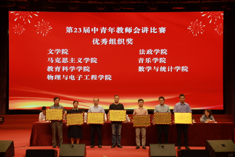全体校领导为获奖集体和个人颁奖。学校相关职能部门、各二级院(部)主要负责人及获奖教师代表参加会议。