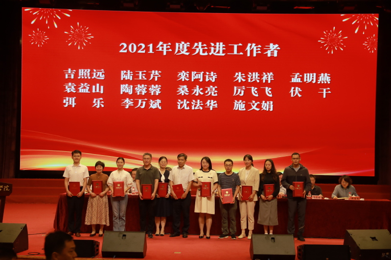 大会对我校从事教育工作满40年和满30年的教职工、2020-2021年度“三育人”先进个人、2021年度先进工作者、2021年度国家级一流本科专业建设点、第十七届“挑战杯”全国大学生课外学术科技作品竞赛获奖作品、第七届中国国际“互联网+”大学生创新创业大赛获奖作品、2021年江苏省教学成果奖、第三届长三角师范生教学基本功大赛获奖者、第二届江苏省高校教师教学创新大赛获奖者、第十届江苏省师范生教学基本功大赛获奖者、第三届江苏省师范院校教师智慧教学大赛获奖者、第23届中青年教师会讲比赛获奖集体和个人、2022年考研考编工作先进集体和先进个人、2021年度就业创业工作先进集体和先进个人进行了表彰,并公布了2021年度二级学院科研积分情况。