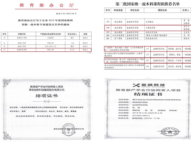围绕中心任务,突出特色发展。在顶层设计搭建的框架下,围绕年度发展目标,集中全力,持续推进。2018年,学院软件工程、数字媒体技术、计算机科学与技术、网络工程四个专业顺利通过江苏省首批本科专业综合评估;成功实施教育部数据中国“百校工程”产教融合创新项目,通过大数据应用协同创新平台项目验收。2019年,学院软件工程专业获批国家一流本科专业建设点。2021年,学院与北京中软国际公司深度合作,校地融合,共建盐城师范学院——中软国际信创产业学院;同年,成立盐城师范学院软件学院。2022年,软件工程专业获批江苏省产教融合型品牌专业建设点;学院获批江苏省工程研究中心。